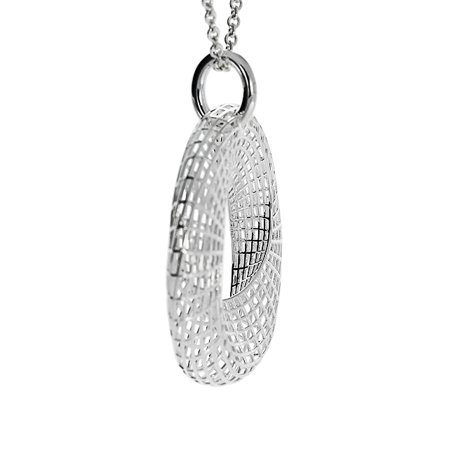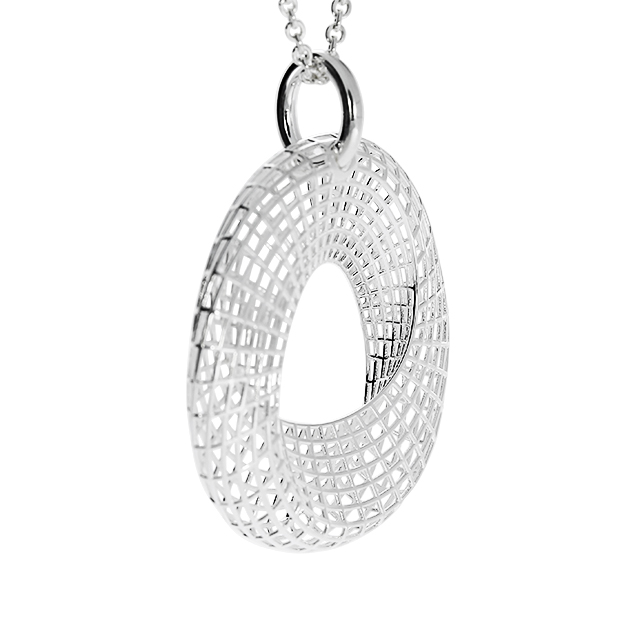 Ein faszinierendes Spiel aus Licht und Form: Dieser filigran gearbeitete Anhänger besticht durch seine moderne, offene Struktur und elegante Leichtigkeit. Die fein geschwungenen Linien verleihen ihm eine zeitlose Ästhetik – perfekt für stilbewusste Auftritte mit besonderem Ausdruck.