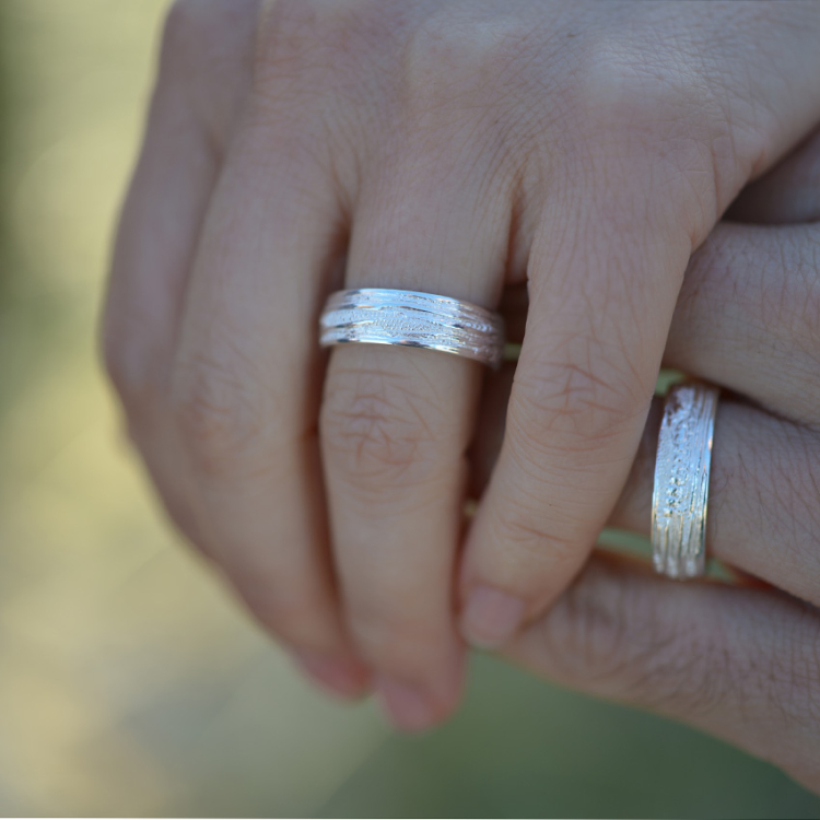 Sometimes very fine and smooth, sometimes grainy and with indentations: Jewellery from the Strandcores collection symbolises the constant and small changes that make up life. The pieces with the expressive surface are available as rings, earrings and necklaces.