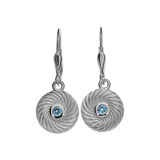 Earring silver Waves Topaz swiss 3 mm round fac