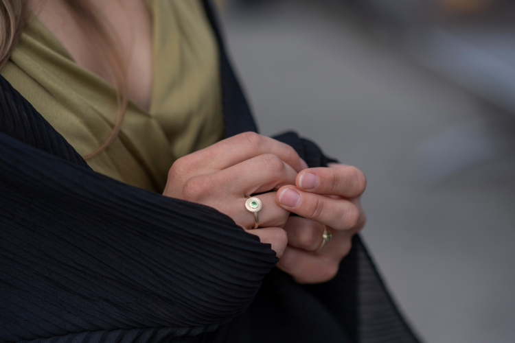 Ring Wave 585 yellow gold tsavorite 3 mm fac